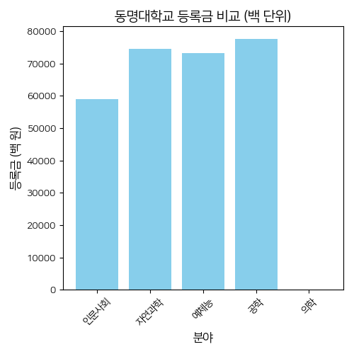 동명대학교는 부산에 위치한 사립대학교로 2022년 기준 등록금(수업료)는 7,029,065원입니다. 다음은 세부 단과대학 비교입니다.